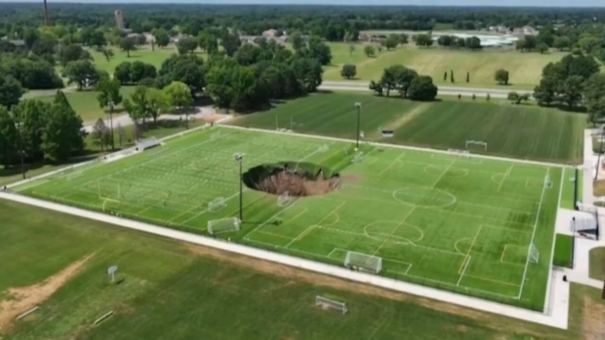 De acuerdo con las imágenes compartidas por el periodista, Collin Rugg, el agujero gigantesco tenía una dimensión de 100 pies de ancho y 30 pies de profundidad. Las imágenes dan cuenta de cómo un poste de luz del campo de fútbol en Alton, Illinois, es devorado por el socavón.