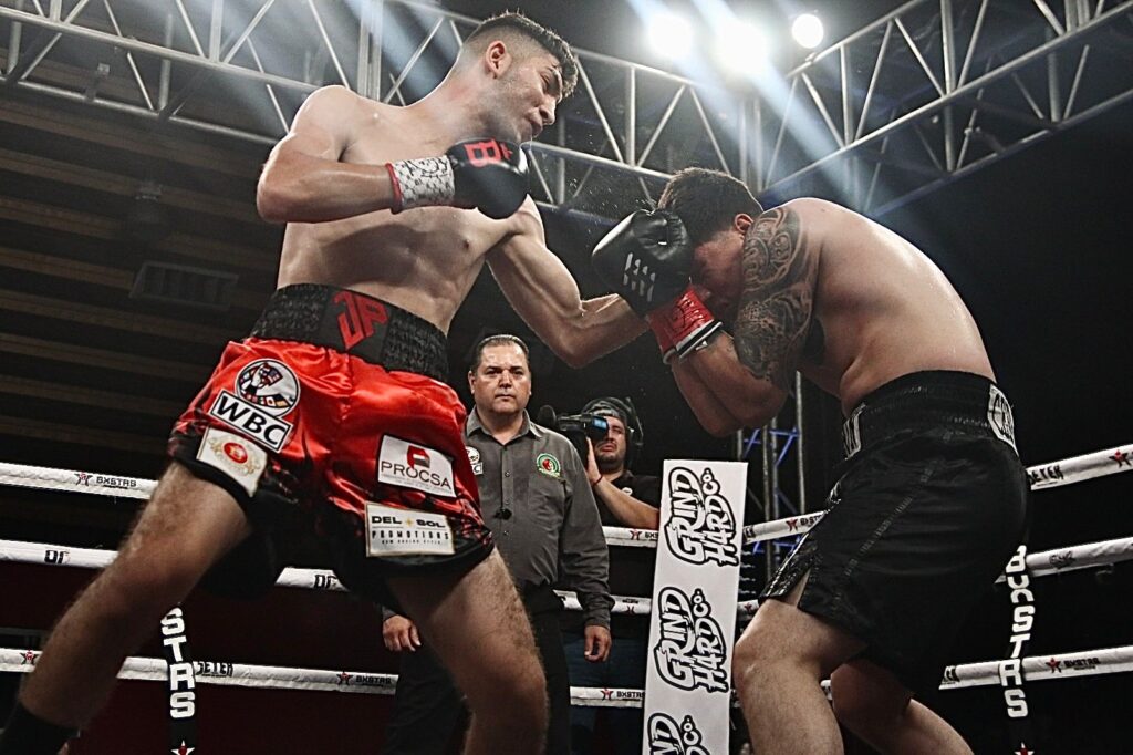 Julio Porras, pupilo de José Benavidez, fue la pelea coestelar de la noche y con su victoria contundente el ‘Diamante’ extendió su marca invicta a 11-0-0, 8 ko’s y conquistó el primer campeonato de su carrera, el Mundial Juvenil Plata CMB 168 lbs, al noquear en el sexto round al valiente Yeasson Pacheco (7-3-1, r ko’,s), quien es pupilo de Omar ‘Gallo’ Aguilar, padre de los tijuanenses Omar ‘Pollo’ Aguilar y Rubén Aguilar.