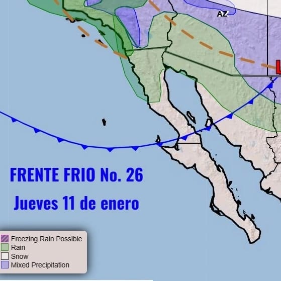 Debido al ingreso del frente frío 26, se esperan temperaturas mínimas desde los – 7°C hasta los 0°C en el estado, esto según los monitoreos y evaluación de diferentes modelos del fenómeno meteorológico, los cuales indican que los valores más bajos se registrarán en las zonas montañosas.