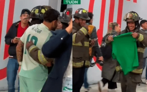 Como el que algunos medios como TUDN captaron, que tuvo el jugador de Toluca con unos Bomberos en pleno partido. Sí, así como lo leen, Alexis “se puso la del Puebla” y no solo accedió a tomarse una foto con ellos al término del partido, sino también les hizo tremendo regalo.