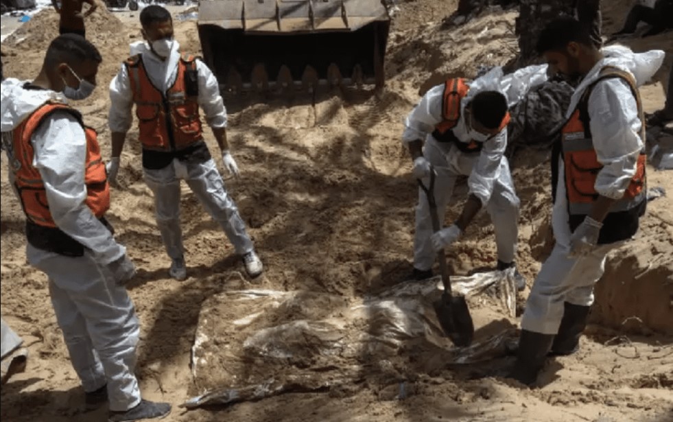 La Protección Civil de la Franja de Gaza indicó que desde el sábado se exhumaron 340 cadáveres que habían sido enterrados por las fuerzas israelíes en fosas comunes en el hospital Nasser de Jan Yunis.