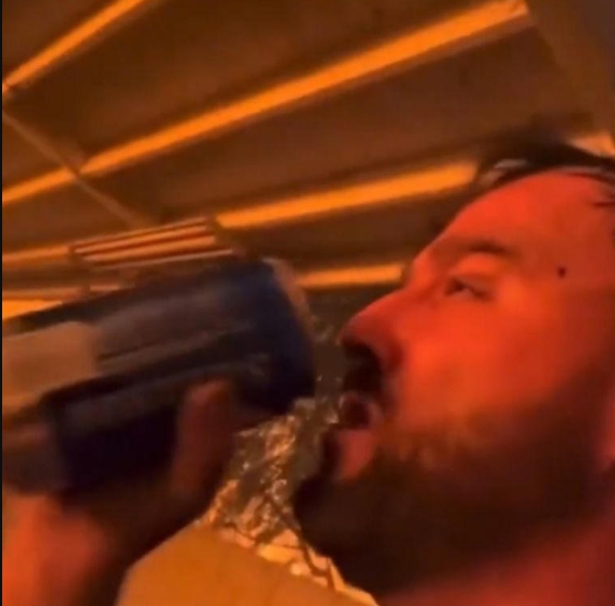 El hombre del cual se desconoce su identidad no hace más que gritar y lamentar lo que está sucediendo a su alrededor y da a conocer que lamenta que el fuego probablemente alcance su lujosa colección de autos, por lo que es segundos después se dirige hacia un refrigerador en su cochera y no hace más que tomar una cerveza.