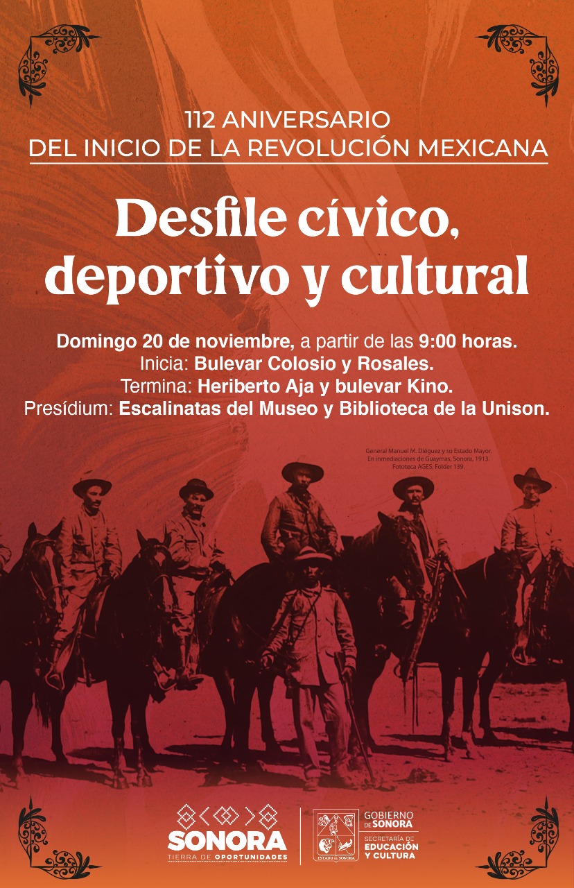 El desfile conmemorativo dará inicio a las 9:00 horas en bulevar Luis Donaldo Colosio y avenida Rosales para culminar en avenida Heriberto Aja y boulevard Eusebio Kino, por lo que se recomienda a los asistentes llegar con anticipación ante el cierre de algunas vialidades.