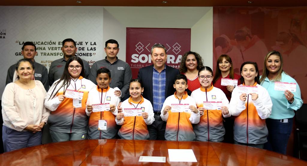 Los integrantes del equipo Mapaches ALR, Francisca Marian Camacho Sandoval, Fernando Camba Valenzuela, Ana Lucía González Navarro, Lilian Madrid Escoboza, Javier Hilario Molina Bringas y Yair Pinzón Méndez Víctor, así como su docente asesora, Tania Karina Caro Quiroz, recibieron apoyo de traslado por parte del Gobierno de Sonora.