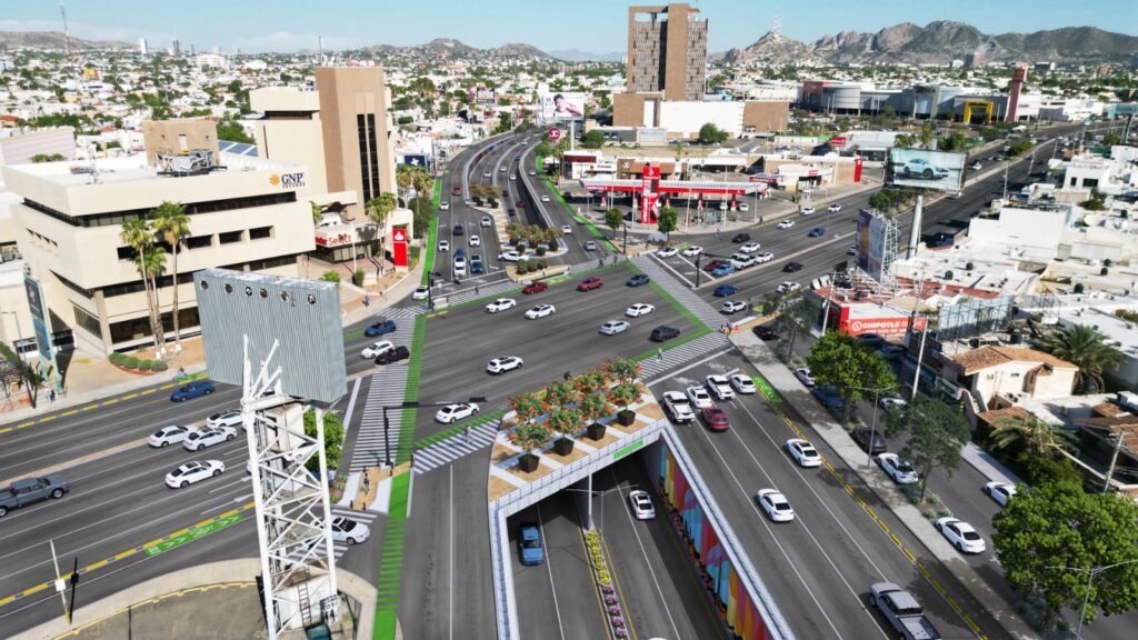 En el bulevar Solidaridad serán 4 carriles por sentido, Sur-Norte, Norte-Sur; 2 carriles exclusivos de vuelta izquierda por sentido y 1 carril exclusivo de vuelta derecha, detalló.