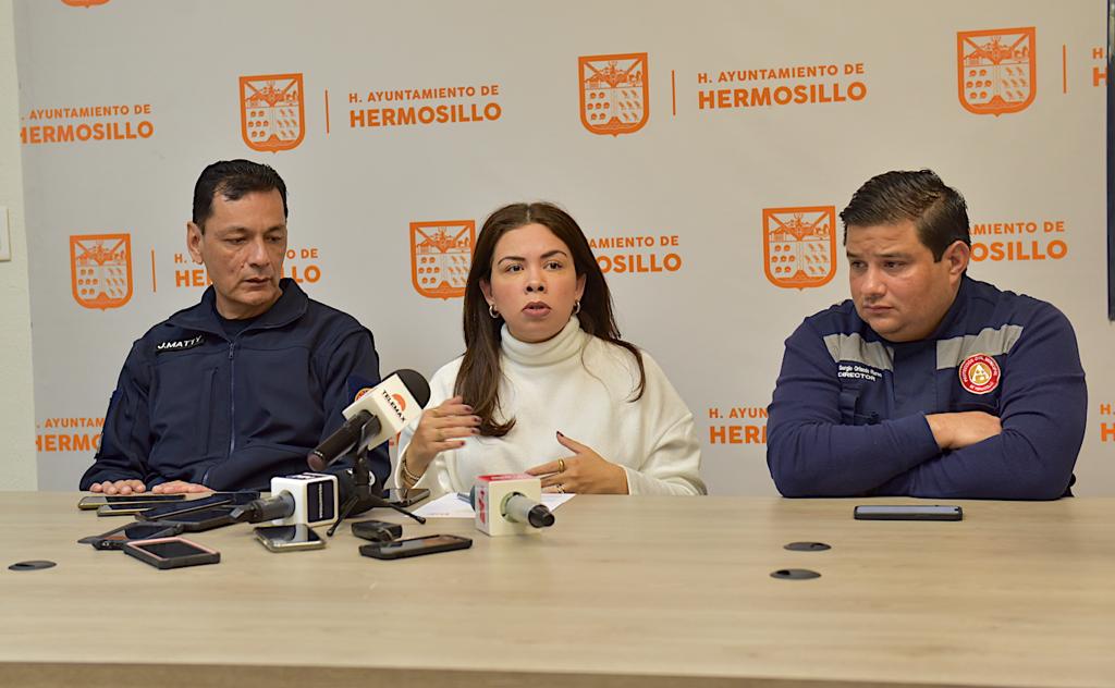 En conferencia de prensa conjunta, Sergio Orlando Flores, titular de la Coordinación Municipal de Protección Civil (CMPC); Isela Montes de Oca, directora general de DIF Hermosillo y Juan Francisco Matty Ortega, director de Bomberos de Hermosillo, describieron el protocolo de atención previsto para cuando la temperatura baja de los 5 grados Celsius.