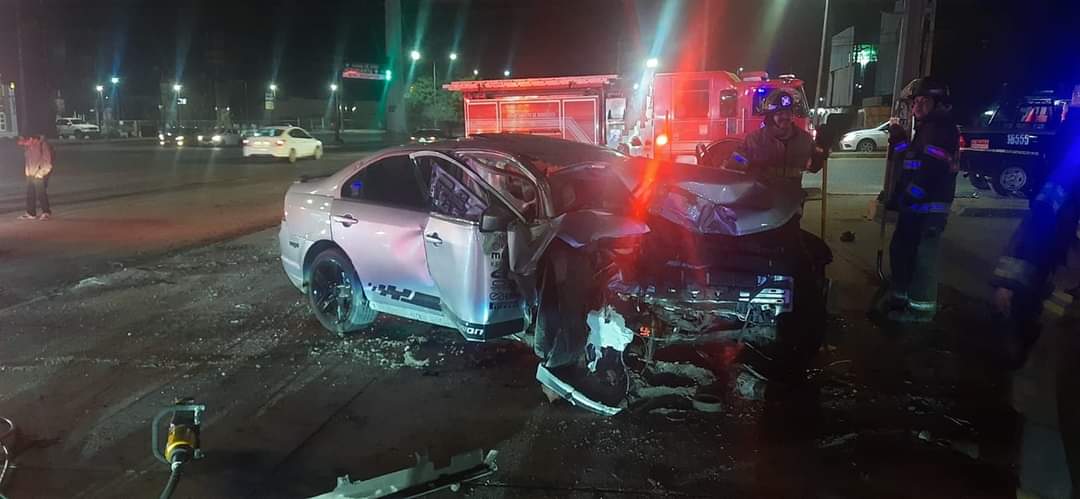 Minutos después, el conductor estrelló la unidad automotriz con su parte frontal contra un poste de concreto; varios testigos acudieron al rescate de las personas atrapadas, y también llegó al lugar personal de Bomberos que pasaba por el sitios, quienes sofocaron las llamas del automóvil y rescataron a tres masculinos.
