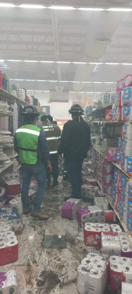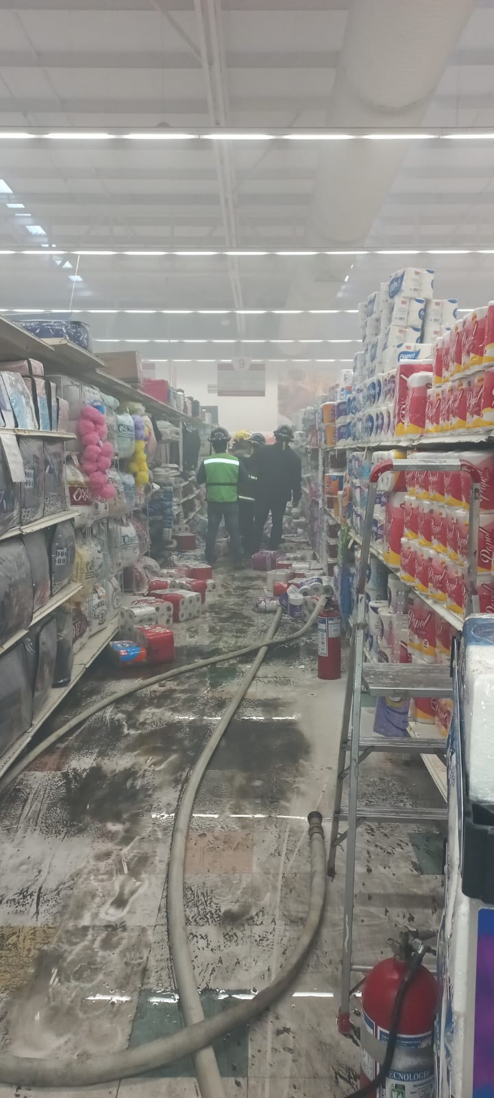 La Dirección de Atención a Emergencias y Desastres de Protección Civil Sonora, se coordina con Bomberos de Hermosillo, en la atención de un reporte por incendio en un supermercado Ley.