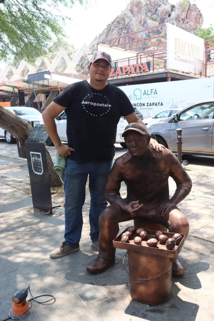Marianna González Gastélum, directora general del Instituto Municipal de Cultura y Arte, IMCA, expresó que quedó restaurada la escultura del “Vendedor de pitayas” y otras que forman parte de la Ruta Escultórica de la Identidad están en proceso de reparación.