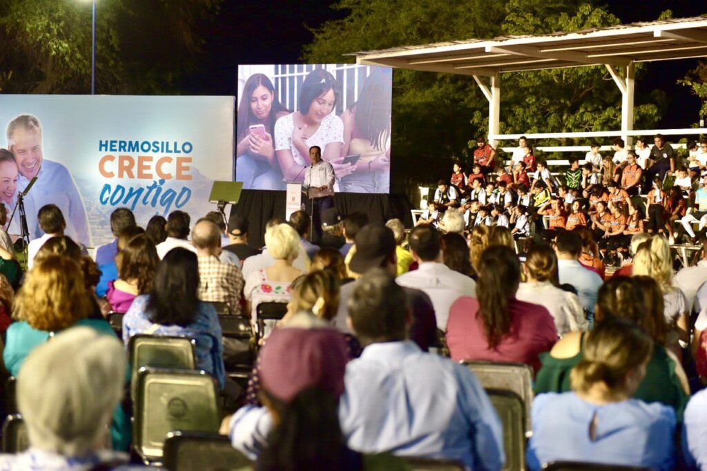 “Lo adecuamos con juegos infantiles de calidad, campos de basquetbol, voleibol de playa, beisbol, futbol, áreas de ejercicio y la primera pista de atletismo pública”, resaltó, “un espacio incluyente para personas de todas las edades, que además es hogar de 800 árboles nativos como palo verde, mezquites, guayacanes y tabachines, que estamos regando con agua tratada”.