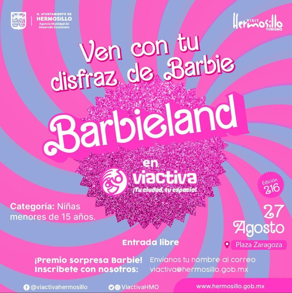 El próximo domingo 27 de agosto, familias hermosillenses y visitantes podrán disfrutar una Víactiva especial con la temática de Barbieland, concurso de disfraces, pasarela de mascotas y otras actividades.