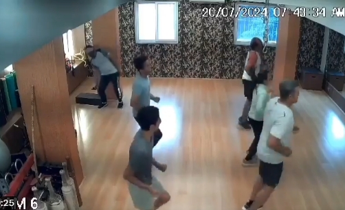 Se hizo viral un video en donde sale un grupo de personas haciendo zumba, apenas iniciaba la clase, cuando de pronto el hombre se sintió mal, paró de bailar, trató de relajar su cuerpo, pero al final cae al piso infartado y todos los participantes de la clase de baile corrieron para auxiliarlo.