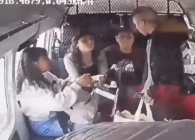 En ese momento, los otros dos individuos que lo acompañaban se levantan de sus asientos y empiezan a despojar a los pasajeros de sus pertenencias. Uno de ellos arrebata dos mochilas a jóvenes que aparentemente eran estudiantes.